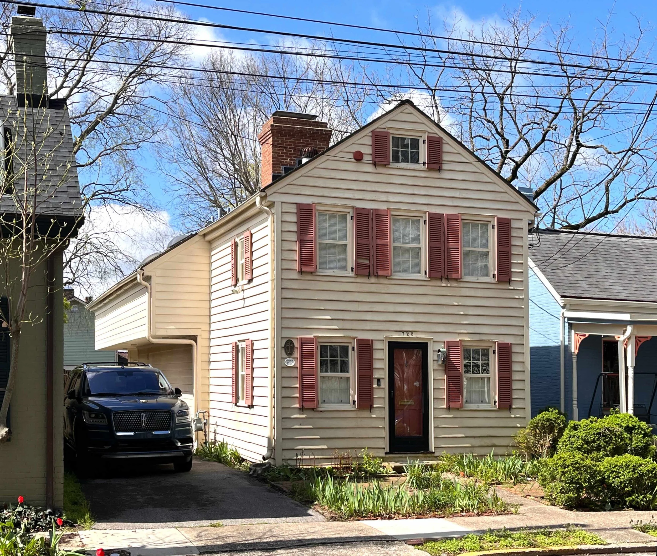 Nestled in the Western Suburb Historic District, this rare, half-timbered building dates to the late eighteenth century and was originally situated on Inlot 17 (in the vicinity of 504 W. Short). When it was threatened by demolition in 1977, the Crutcher family deconstructed the building and reassembled it at its current location. From 1986 to 2018, it was the home of Bettye Lee Mastin, a veteran journalist and one of the region's leading architectural historians. Our April 8th social media post presents the full history of this remarkable plaque property.