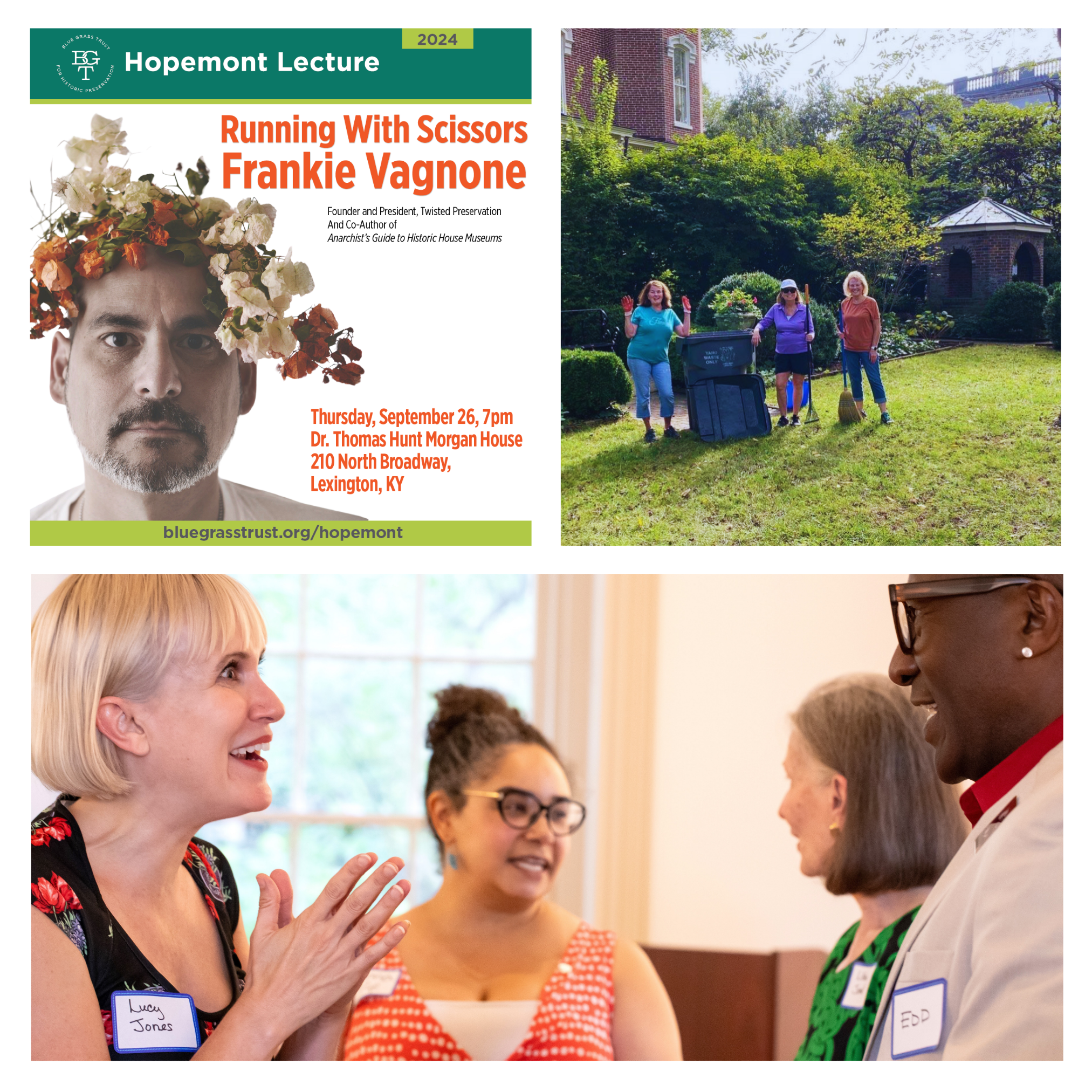 The Blue Grass Trust introduced updated Membership Levels this summer, offering enhanced benefits tied to cumulative donations throughout the fiscal year. During the month of August, we offered new volunteer opportunities, an essential piece in our preservation efforts. In September, we hosted our 2024 Hopemont Lecture featuring Franklin Vagnone, who shared how preservation can inspire innovation and community building.