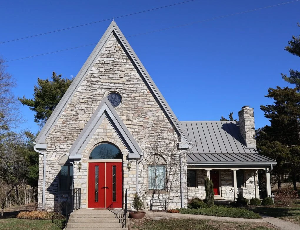 Completed in 1969, this picturesque stone structure was designed from drawings by William R. Moody and modeled after a traditional English country church. Built of native Kentucky limestone and timber grown in the Commonwealth, St. Hubert's reflects a deep commitment to local materials, craftsmanship, and thoughtful design. A Clark County family donated the five-acre site along Grimes Mill Road, and the church itself was funded entirely through private gifts.